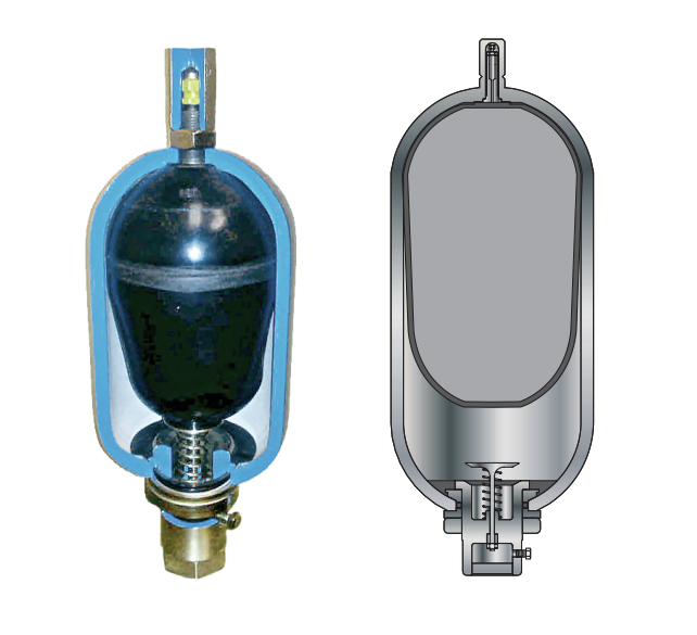我們的皮囊式蓄能器是由高強無縫鉻鉬鋼殼體和高等級彈性材料皮囊組成,裝配生產(chǎn)符合ASME壓力容器標(biāo)準(zhǔn). 皮囊式蓄能器有多種工業(yè)標(biāo)準(zhǔn)的容積和壓力可以選擇,它對于吸收系統(tǒng)的震動和脈沖有良好的作用.